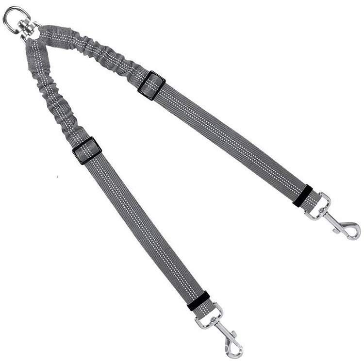 Adjustable Length --- With buckle on the straps and the elastic bungee inside; this dual dog leash can be adjusted from 18 inches to 24 inches. Good adjustable length so the dogs can get themselves comfy without restricting themselves; suitable for all medium and large dogs combination.